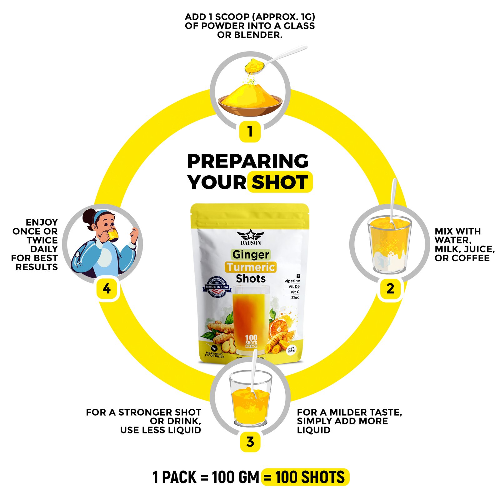 DAUSON Ginger Turmeric Powder Supplement – 100 Servings – Shot 1