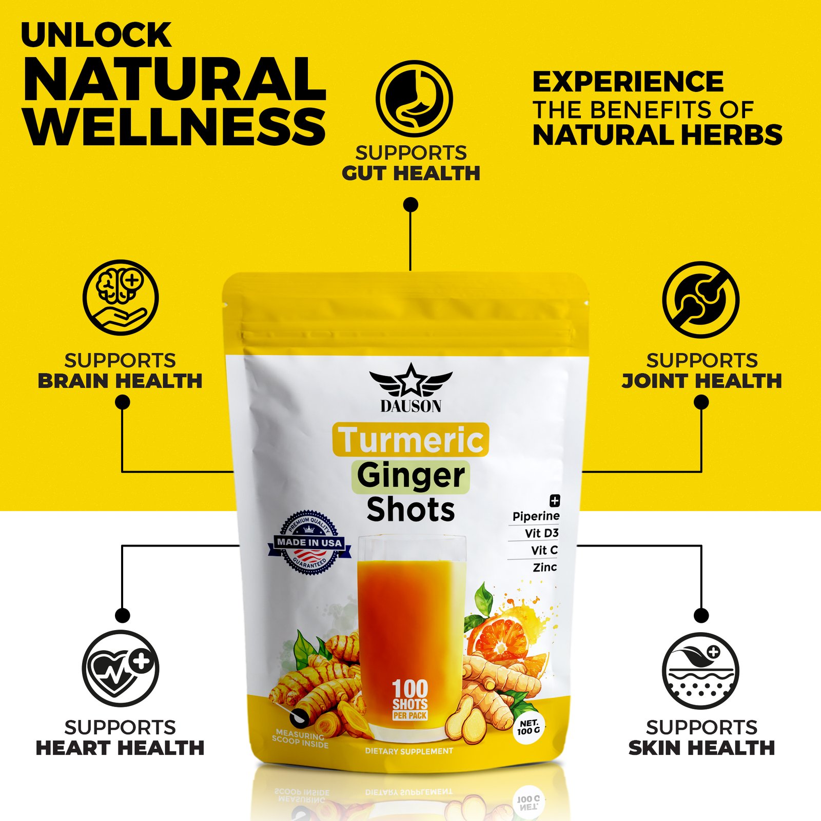 DAUSON Turmeric Ginger Powder Supplement – 100 Servings
